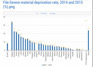 On the other hand, the deprivation rate was 22.2 % in Greece, 22.7 % in Romania and peaked at 34.2 % in Bulgaria.