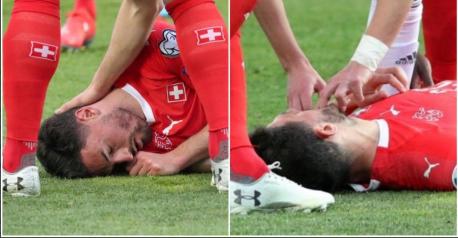 Schar was knocked out for four minutes after a clash of heads and looked to be unconscious, sparking fears that he was in serious trouble. There were fears he may have swallowed his tongue and players from both sides rushed to his aid.