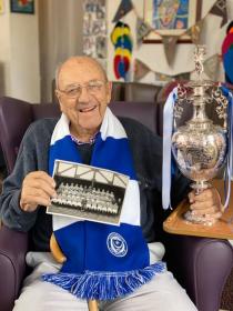 The look on Jimmy Elder's face when we turned up with the League Championship trophy at his home in Yorkshire was an absolute delight. At 91 Jimmy is the oldest former Pompey player and the sole survivor of the class of 1949/50.Attachment 14230