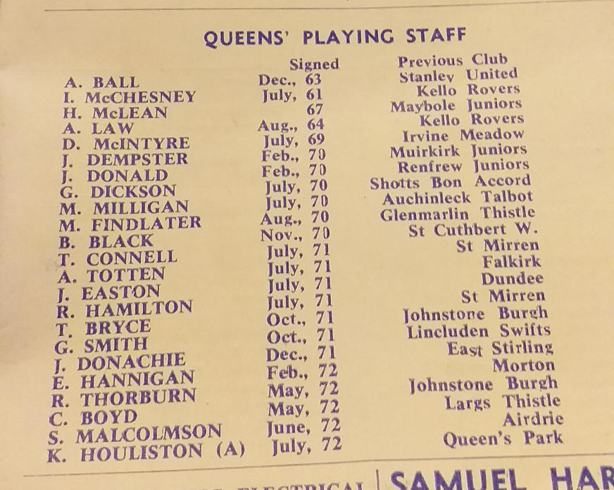 QOTS v Dunfermline 02/09/1972 League