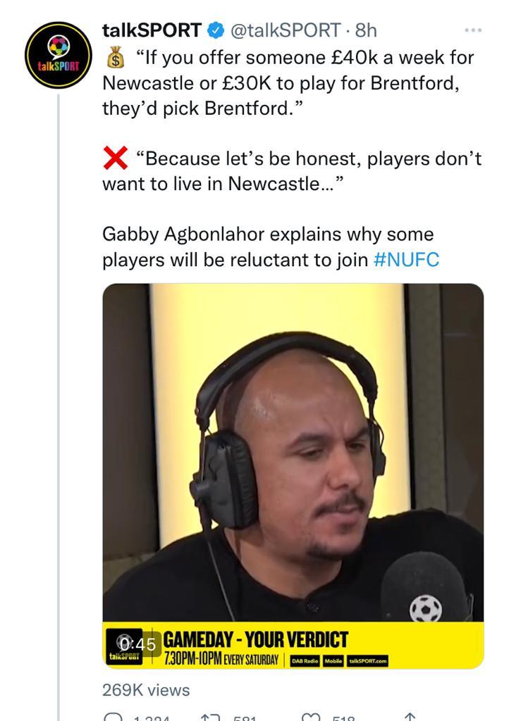 Best of all this sh1te coming from a Brummy too. Of all places to come from and then slag off Newcastle just shows the level of his intelligence.