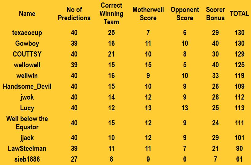 As getting to business end of season every point counts lol , looks like got nothing for correct Motherwell score as only up 4 points instead of 6
