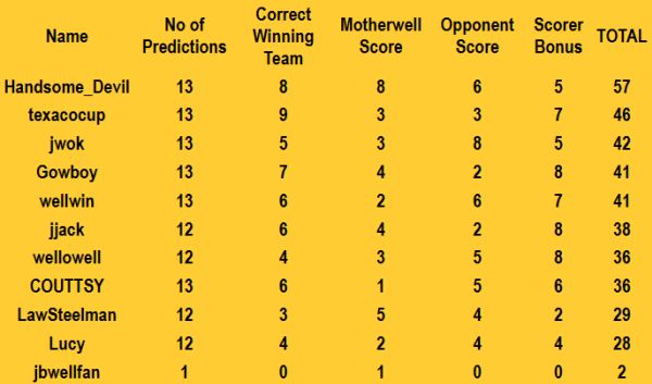 Precious few points awarded this week, apart from texacocup who saw the loss coming.