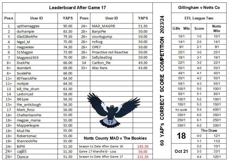 ❔Score, scorers and attendance predictions v Gillingham [A] 21.10.2023 [EFL L2]