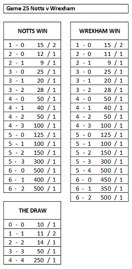 With Notts at 6/4 and Wrexham at 29/20, the bookies have Wrexham as slight favourites.