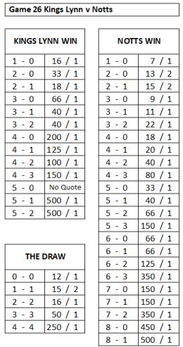 Notts 4/5 - Draw 5/2 - Grimsby 13/5