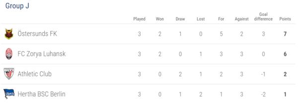 Are topping the Europa League Group Stage having beaten Hertha Berlin and Ukranian Side FC Zorya Luhansk and drawing with Athletic Bilbao