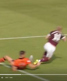 Then McNulty wins the ball in penalty area when defender trying to shepherd it out - never a foul but given.