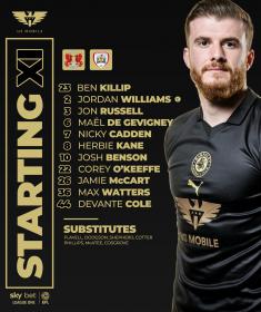 Subs: Flavell (GK), Dodgson, Shepherd, Cotter, Phillips, McAtee, Cosgrove.
