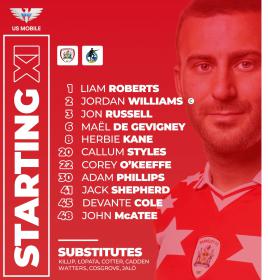 REDS: Roberts (GK), O'Keeffe, Williams (c), de Gevigney, Shepherd, Styles, Kane, Russell, Phillips, McAtee, Cole.