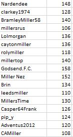 2/3 of the season now gone and millersrus has edged slightly ahead of yours truly with Godsend and Nez currently bringing up the rear.