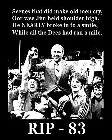 It is probably hard for younger Arabs to understand the full impact Jim McLean had on some of us, not just in terms of achievements -which are there in black in white, but when I started following Utd mid eighties, Jim McLean was all I knew, he'd be there for another decade as manager and further in the background. I always hung on his every word - programme notes, interviews, autobiography etc... watching how he would set teams up for Europe, listening to his tactical thinking was fascinating, his introduction of new ideas etc... and consider myself lucky to as a fan have almost got that as my football education, and a rounded education. Likewise our European sorties made me aware of football outside Scotland and I became fascinated with the likes of the great AC Milan side in the late 80s, and World Cups etc... at a time when there was little television exposure to football outwith your own country.