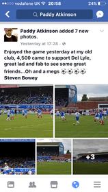 Enjoyed the game yesterday at my old club, 4,500 came to support Del Lyle, great lad and fab to see some great friends...Oh and a megs ⚽️⚽️⚽️⚽️ Steven Bowey