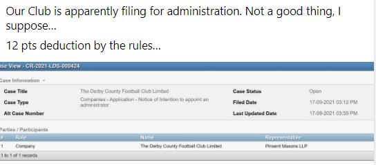 Confirmed on the Derby website with Mel blaming EFL!