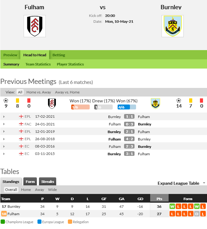 Fulham have just about run out of bullets in the shootout in the OK Corral. They need a win whilst a draw in this fixture would leave them to die an agonising lingering death. When these two sides met in February Ashley Barnes quickly equalised for the Clarets following a great break from Jay Rodriguez to cancel out Aina’s chested opener. Ashley and Jay will probably have to do with starting on the bench on this occasion as the Wood/Vydra partnership looks set to continue. Fulham could be missing the lively Harrison Reed from their midfield while Burnley are likely to be unchanged from the side that disappointingly let yet another lead slip away against West Ham. Burnley were simply not on their game allowing Michail Antonio two close range finishes from crosses into the box. Fulham will be looking to raid the wings and put in the type of crosses which brought the Hammers so much joy. Maybe Mitrovic will start or come off the bench if Fulham see a weakness in the Claret’s back line.