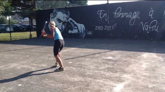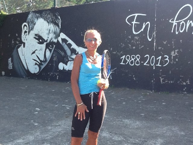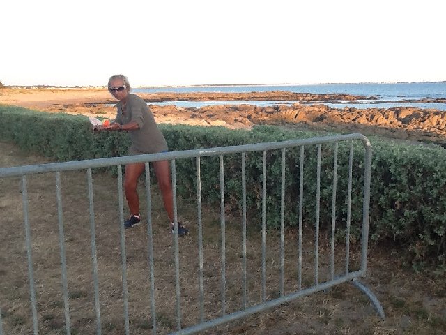 On the other side of the wall is a caged Racquet ball game court which is mixture of tennis/squash were both players have to hit the ball against a wall to win points.Its good fun and great practice for Beach tennis which is very popular in Brittany played on a small court on the beach using a small bat/racquet,a soft ball which must not be allowed to touch the beach surface - again it's real fun to play.