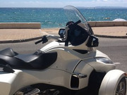 The Can Am Spyder trike was a compromise when I came over to Brittany.I only use it locally as all main roads in France have a limit of 50 mph,so I never go on 60 mph dual carriageways and if wet I get the bus.Mum had bike reservations but Dad got me learning to use it safely particularly the trike turning techniques which requires more physically leaning into bends which was different to my previous 150cc scooter riding experience.Its got a semi automatic transmission which makes riding it easier.