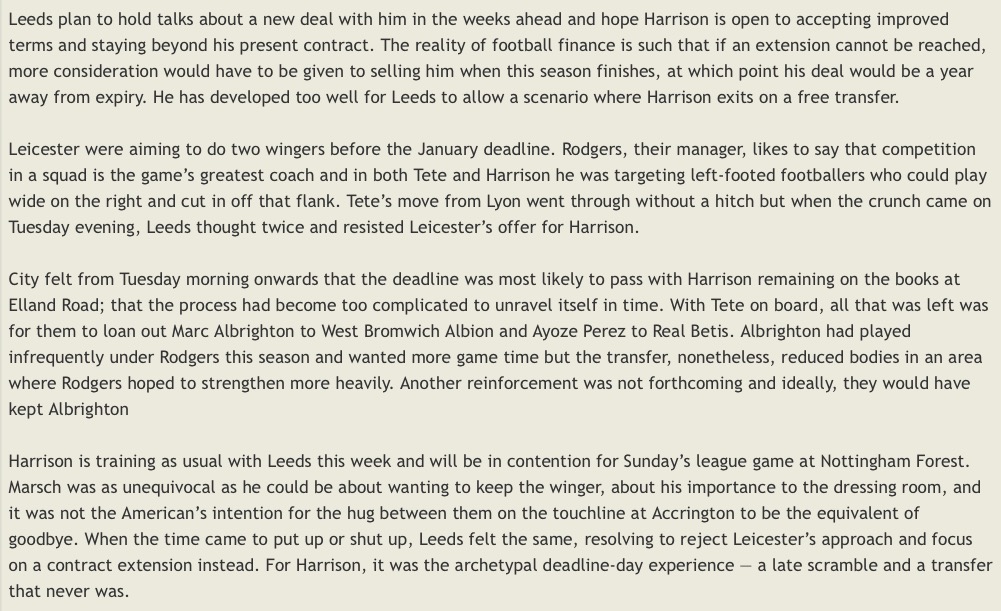 Is there any possibility that the "near" experience with Leicester was used to get his management to accept Leeds current extension offer...without having to up the ante further?
