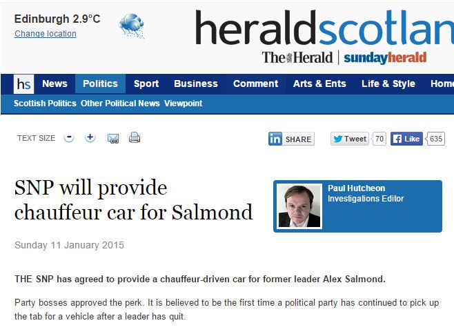 And he earns his money and benefits. Personally I'm delighted he has taken to a chauffeur driven car and the mentality of the Nawbags moaning about the most respected politician in the country having the audacity to a use a chauffeur driven car demonstrates the petty small mindedness of the no voter.[/quote]