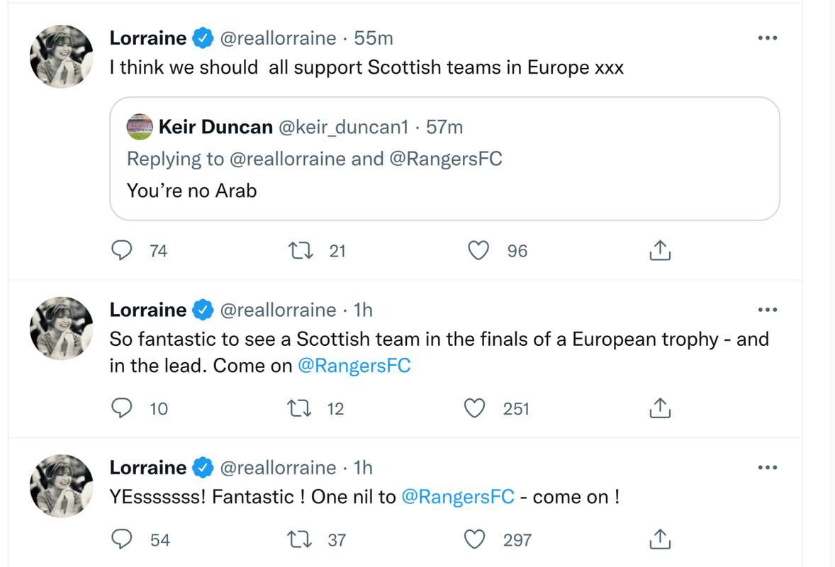 So sorry Lorraine that your team lost to the auld enemy,don't worry though as your 150,000 friends will be singing the English written German Bomber song to them all night,FACT.