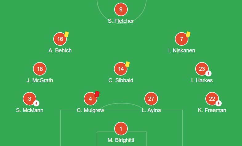 McMann and Sibbald apart obviously, Freeman cant get a game unless Grimshaw takes midfield/injury/rest, McGrath at his best probably takes a no 10 berth. On current form, i have my doubts that Behich displaces either of McMann or Middleton, and Fletcher and Moult would be up front together. No chance that Birighitti, Mulgrew, Harkes and Niskanen displace anyone here now, but Ayina, despite having a few howlers i think may have given Graham a run for replacing an injured Gallacher. Seeing a subs list might be interesting.